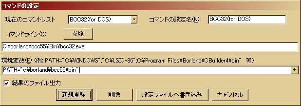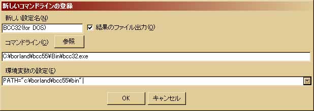 下にBorland C++ Compilerの設定例を示します。今回はc:¥borland¥bcc55に