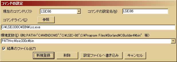 LSIC-86のインストールフォルダがc:¥lsic330cの時の設定例