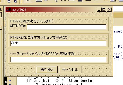 そこで、直接ftn77を呼ぶのではなく、仕様上の違いを吸収するプログラムを間に挟むことにした。それがmc_sftn77(Module of Ceta for Salford Fortran 77)である。