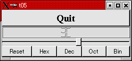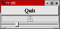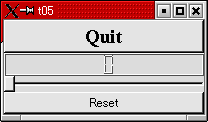 んで、実行ファイル t05 を実行すると冒頭に示したようなウインドウが表示されるわけです。上部のQuitボタンをクリック