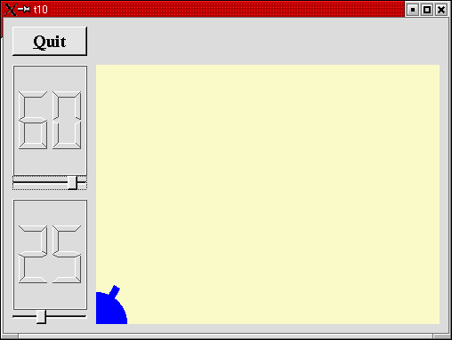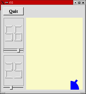 んで、実行ファイル t10 を実行すると冒頭に示したようなウインドウが表示されるわけです。左上のQuitボタンをクリック
